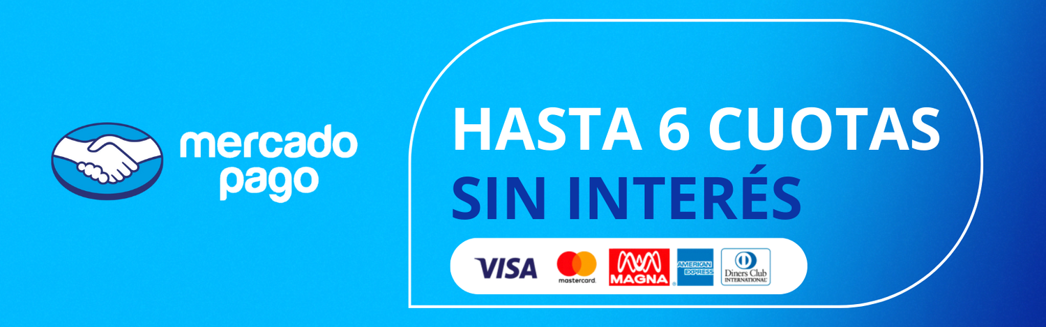 Paga en hasta 6 cuotas sin interés con Tarjetas de crédito a través de MercadoPago.